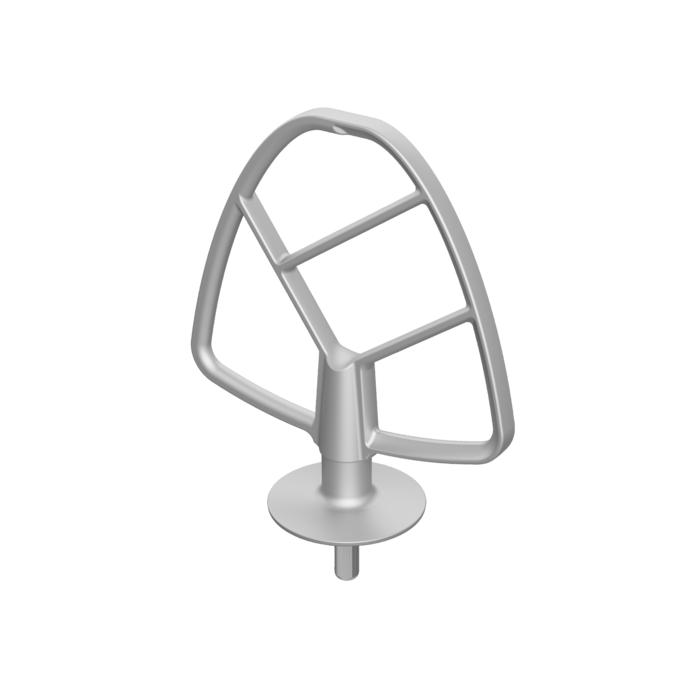Setul de livrare include un cârlig solid pentru frământarea aluaturilor grele, un tel pentru frișcă și albușuri de ou, o paletă pentru aluaturi ușoare și o paletă cu spatulă de silicon integrată, perfectă pentru a colecta cremele de pe interiorul bolurilor.