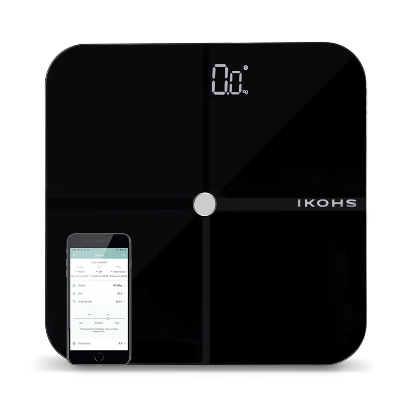 Noul cantar IKOHS Smart Wellness. Precizie totala a mai multor parametri si a diferitilor parametri bio-corp prin aplicatia si conectivitatea compatibile cu Android si IOS. Calibrata cu tehnologia de sanatate System HealthTech, aplicatia Smart Wellnes poate memora biometria a pana la 24 de utilizatori.