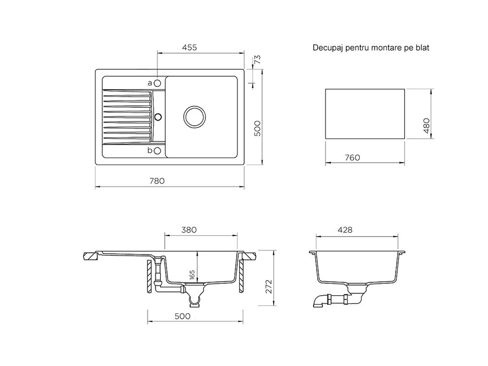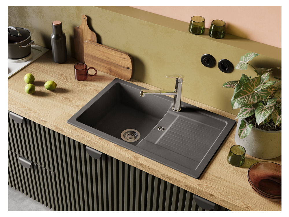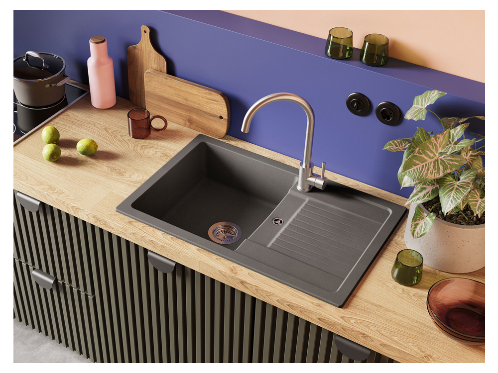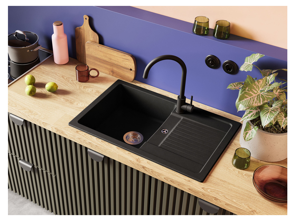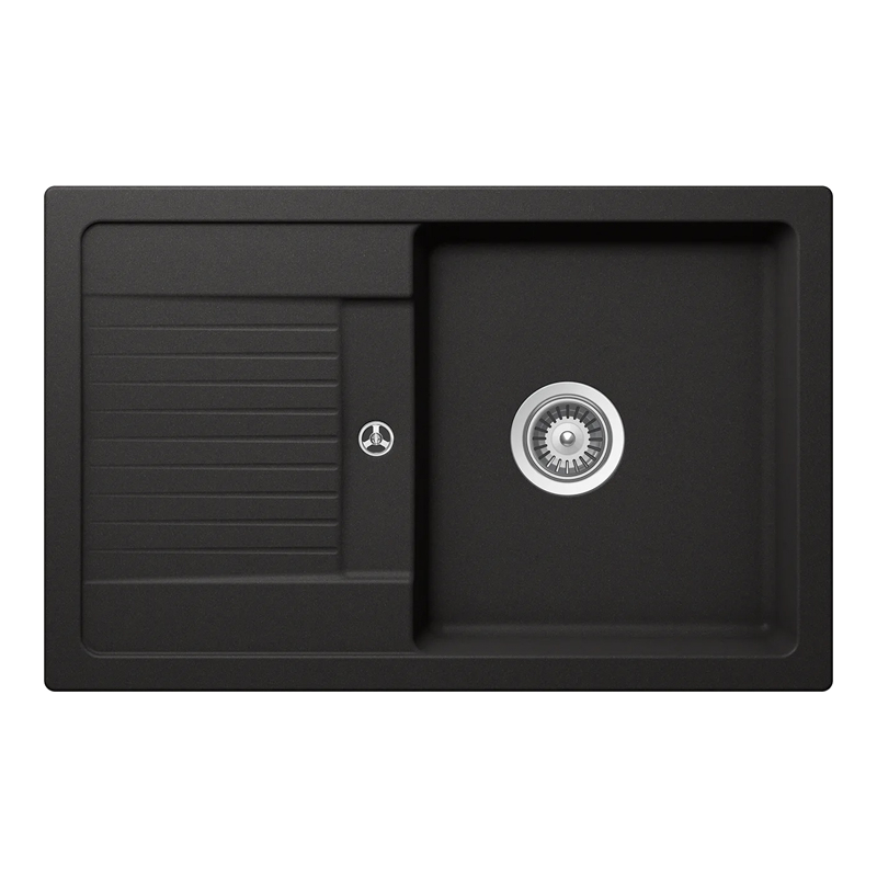 Chiuveta bucatarie Schock Lima D-100S Cristalite Nero 780 x 500 mm, granit, reversibila, montare pe blat, negru - modelul cu 1 cuva si picurator este potrivit pentru corpuri de chiuveta de minimum 50 cm. Canelurile inguste de drenaj ajuta apa sa se scurga atunci cand uscati vasele pe picurator. Usor de curatat. Chiuveta este realizata din material CRISTALITE® deosebit de rezistent - suprafata acestuit tip de material revolutionar este de aproape trei ori mai dura decat roca de granit, ceea ce inseamna si rezistenta sporita la socuri. In plus, suprafata CRISTALITE® include tehnologia SCHOCK proHygienic21, care asigura protectie pentru intreaga dvs. familie, atunci cand pregatiti alimentele, dar si facilitate la intretinere si curatare. Imbinati utilul cu placutul si adaugati o nota indrazneata de culoare bucatariei dvs. Gaura pentru baterie este prefrezata si se face cu ajutorul carotei diamantate inclusa in coletul de livrare. Pachetul include garnitura de scurgere, ventil cos, sifon, cleme si Carota Diamantata.