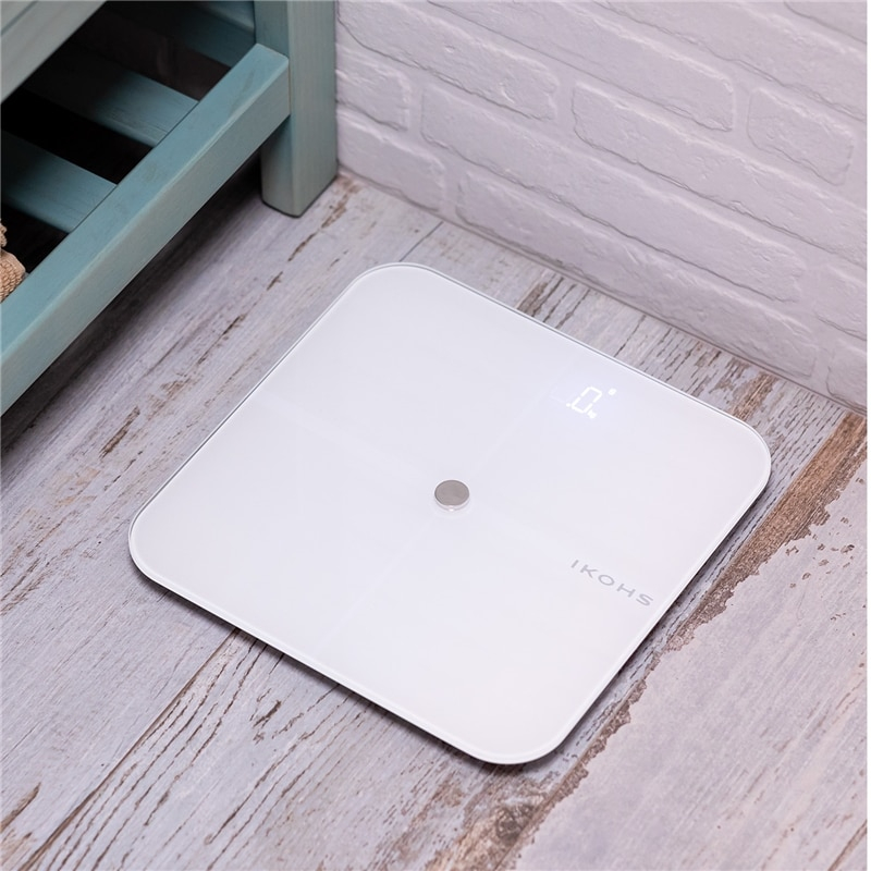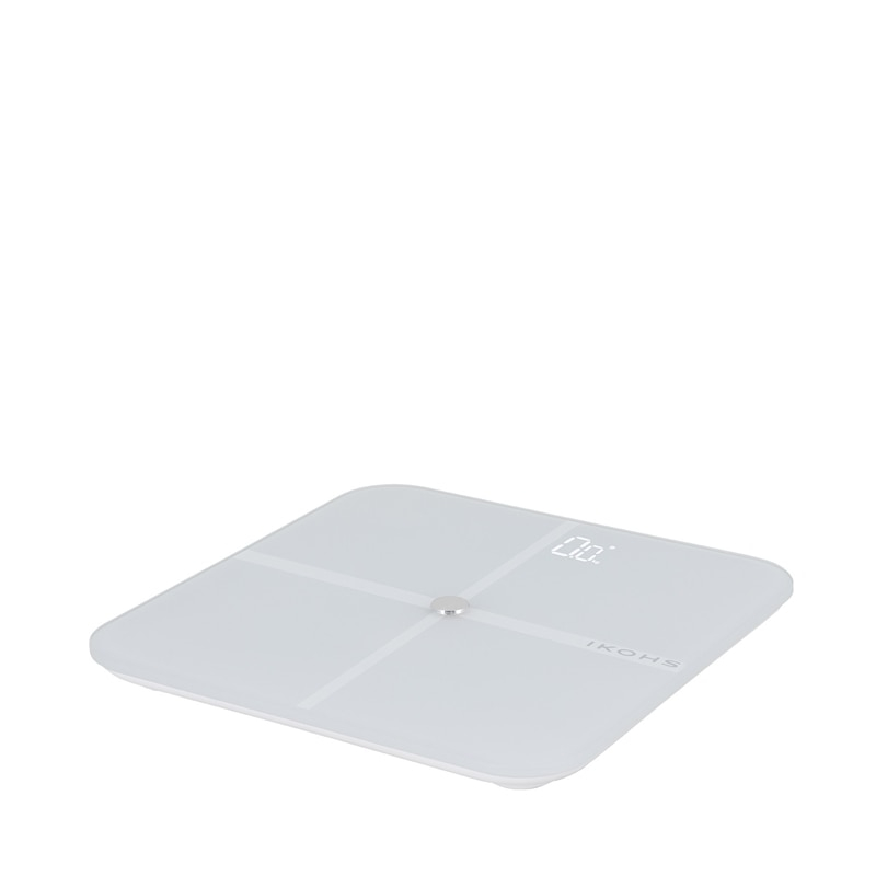 Noul cantar IKOHS Smart Wellness. Precizie totala a mai multor parametri si a diferitilor parametri bio-corp prin aplicatia si conectivitatea compatibile cu Android si IOS. Calibrata cu tehnologia de sanatate System HealthTech, aplicatia Smart Wellnes poate memora biometria a pana la 24 de utilizatori.