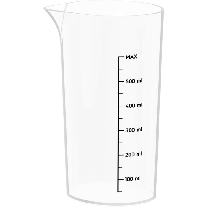 Include un pahar gradat mare, de 600 ml, pentru mixarea uşoară a ingredientelor. Forma unică a paharului gradat este special concepută pentru rezultate optime, fără stropire.
